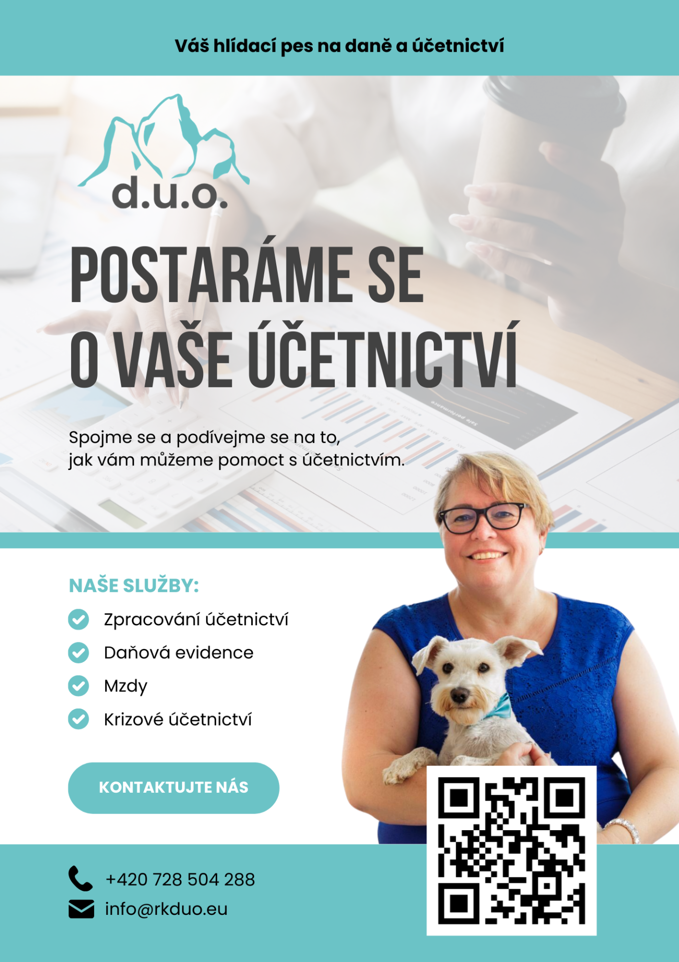 Při výrobě tohoto webu jsme začali od samotných základů – od první schůzky, kde jsme s majitelkou firmy propojili její vášeň k účetnictví a lásku k jejím třem psím mazlíčkům. Na začátku bylo v plánu pouze upravit původní web, ale výsledkem naší spolupráce je zcela nová, jedinečná vizuální identita, která dokonale odráží charakter a hodnoty firmy.
