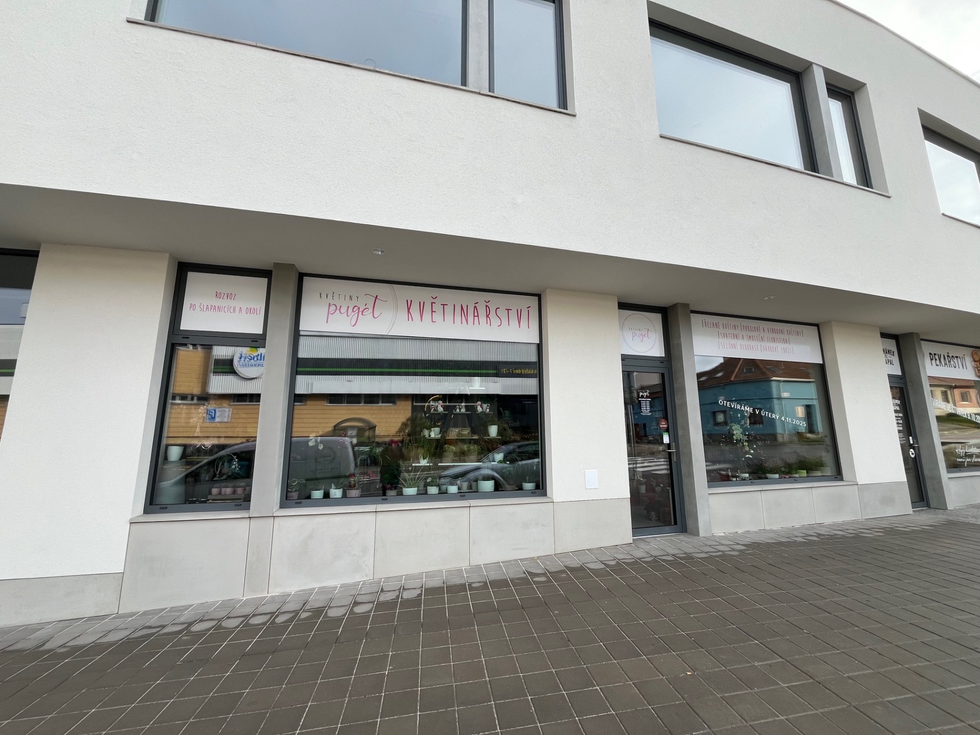 V mezičase také vyrábíme další jedinečné tiskoviny, jako letáky, potisk výloh nové pobočky květinářství ve Šlapanicích, věrnostní kartičky a další.